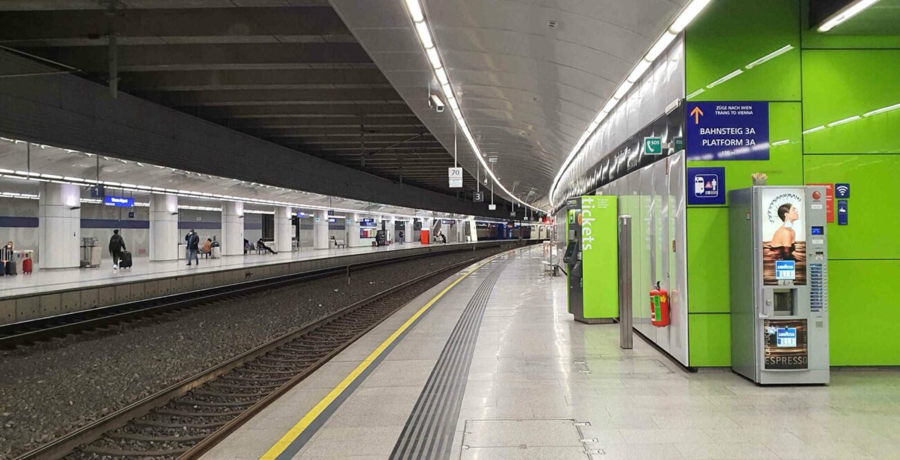 - Výhody: rychlé, pohodlné, vhodné při přestupu z dálkového vlaku (např. z Brna, Prahy nebo Salcburku). Jednoduchý přestup na Railjet směr Flughafen Wien – bez nutnosti opouštět nádraží. Z vlaku na hlavním nádraží až do letadla stále pod střechou.