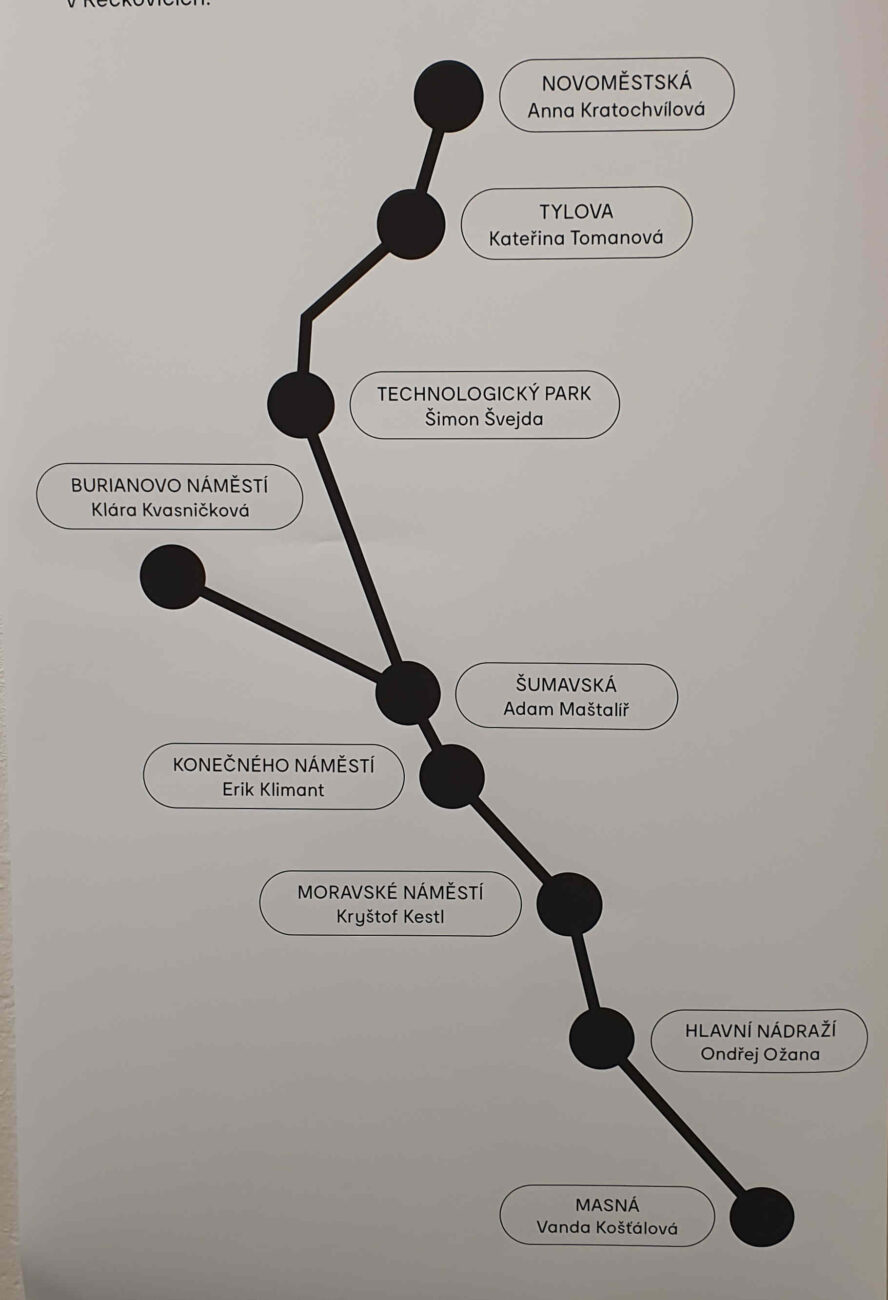 - Přehled stanic brněnské podzemky se jmény studentů, kteří navrhovali stanice.