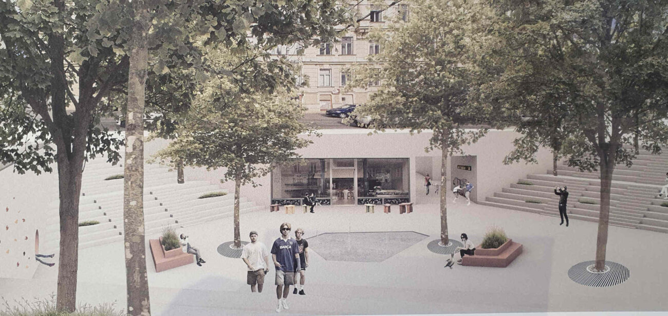 - Vstup do podchodu a na zastávku metra by podle návrhu byl vedle pošty v místě dnešního parkoviště.