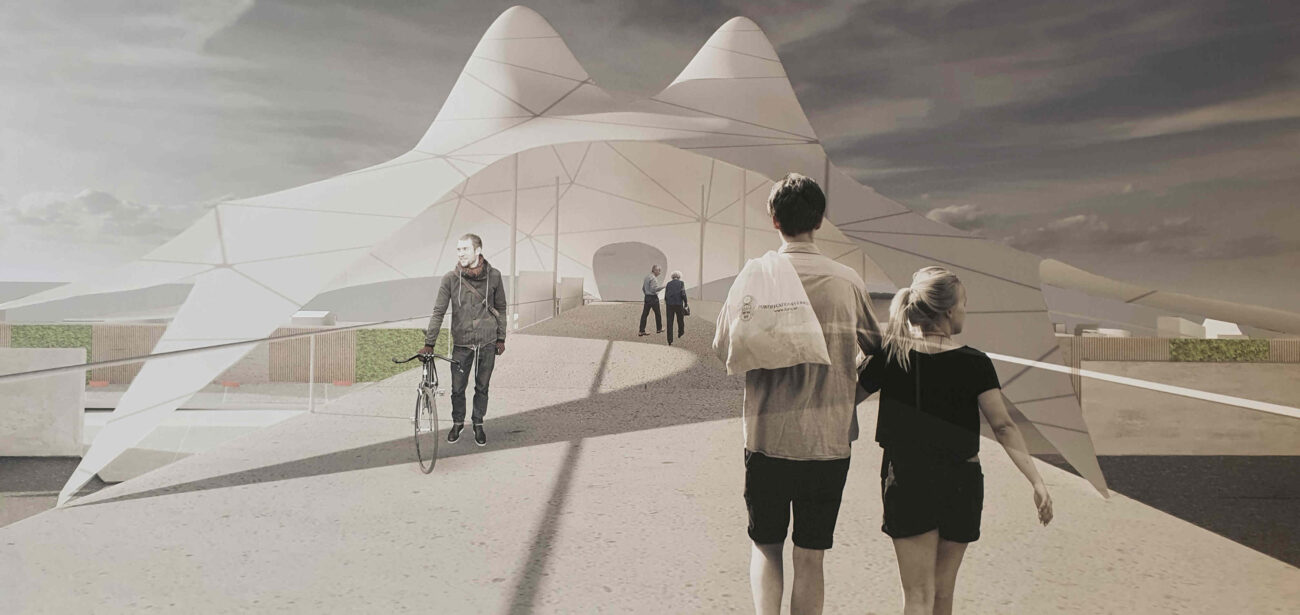 - Vizualizace mostu z řečkovického sídliště na zastávku metra a do Zamilovaného hájku.