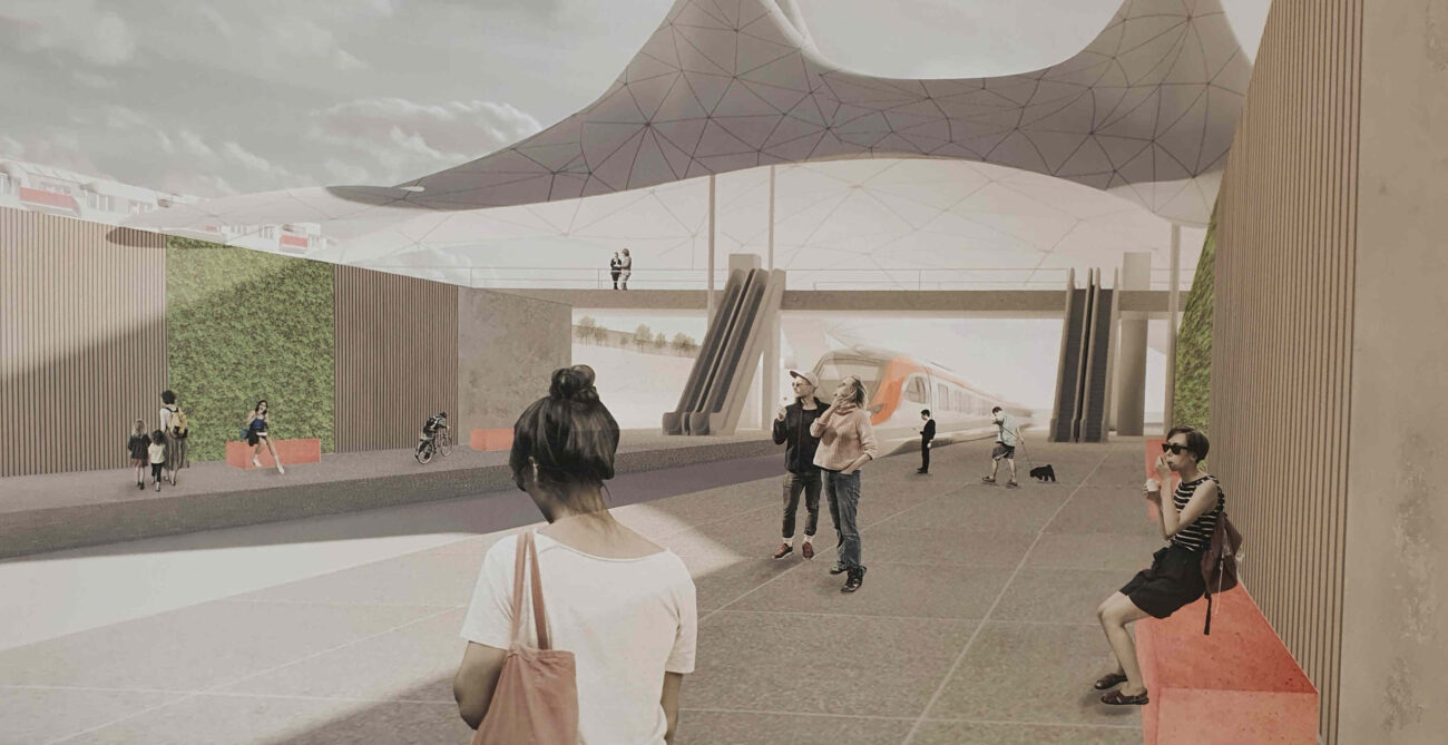 Podchod by byl prosvětlen světlíky přímo z nástupišť, v jejichž prostoru by mohly růst stromy, čímž by se podzemní prostory symbolicky propojily se světem nahoře, tedy s parkem. Student doufá, že právě monumentální schodiště by mohlo být impulsem pro nové využití historické budovy pošty. Podchod by pokračoval až na druhou stranu směrem k ulici Dornych, čímž by vzniklo přímé pěší propojení obou stran území.
