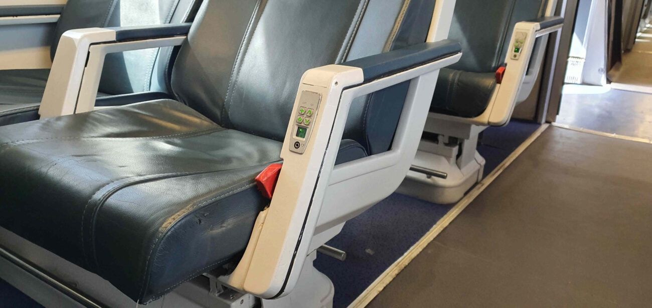 - Sedadla v jednotce Talgo dopravce Leo Express