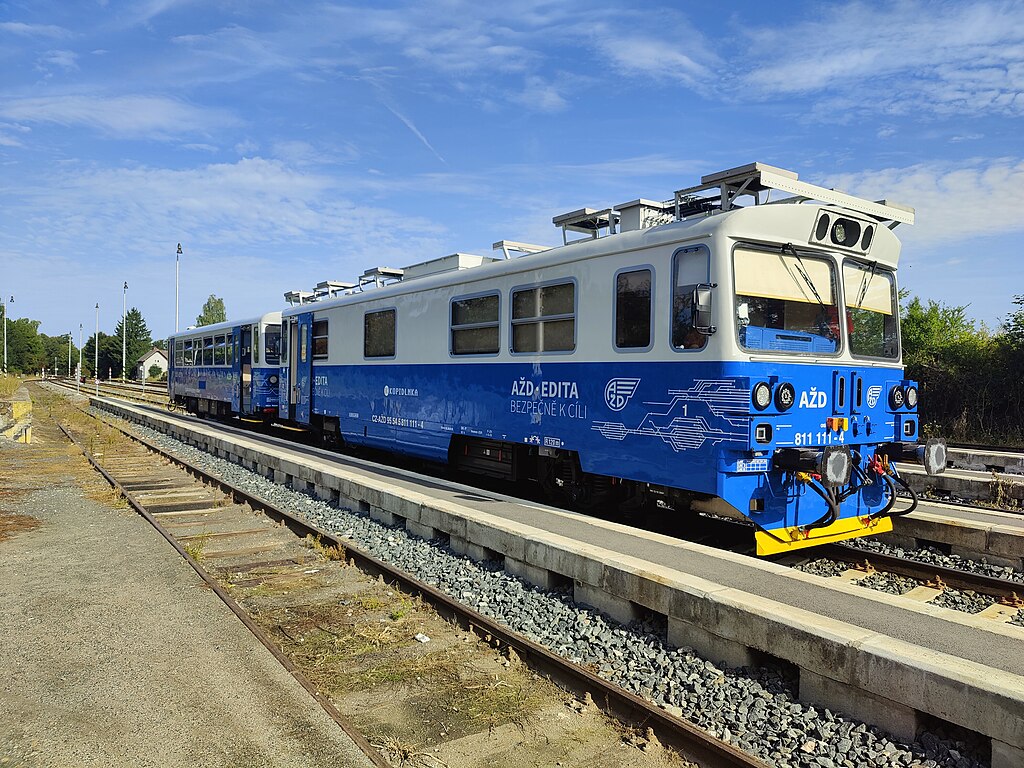 Autonomní vlak společnosti AŽD Edita ve stanici Dolní Bousov