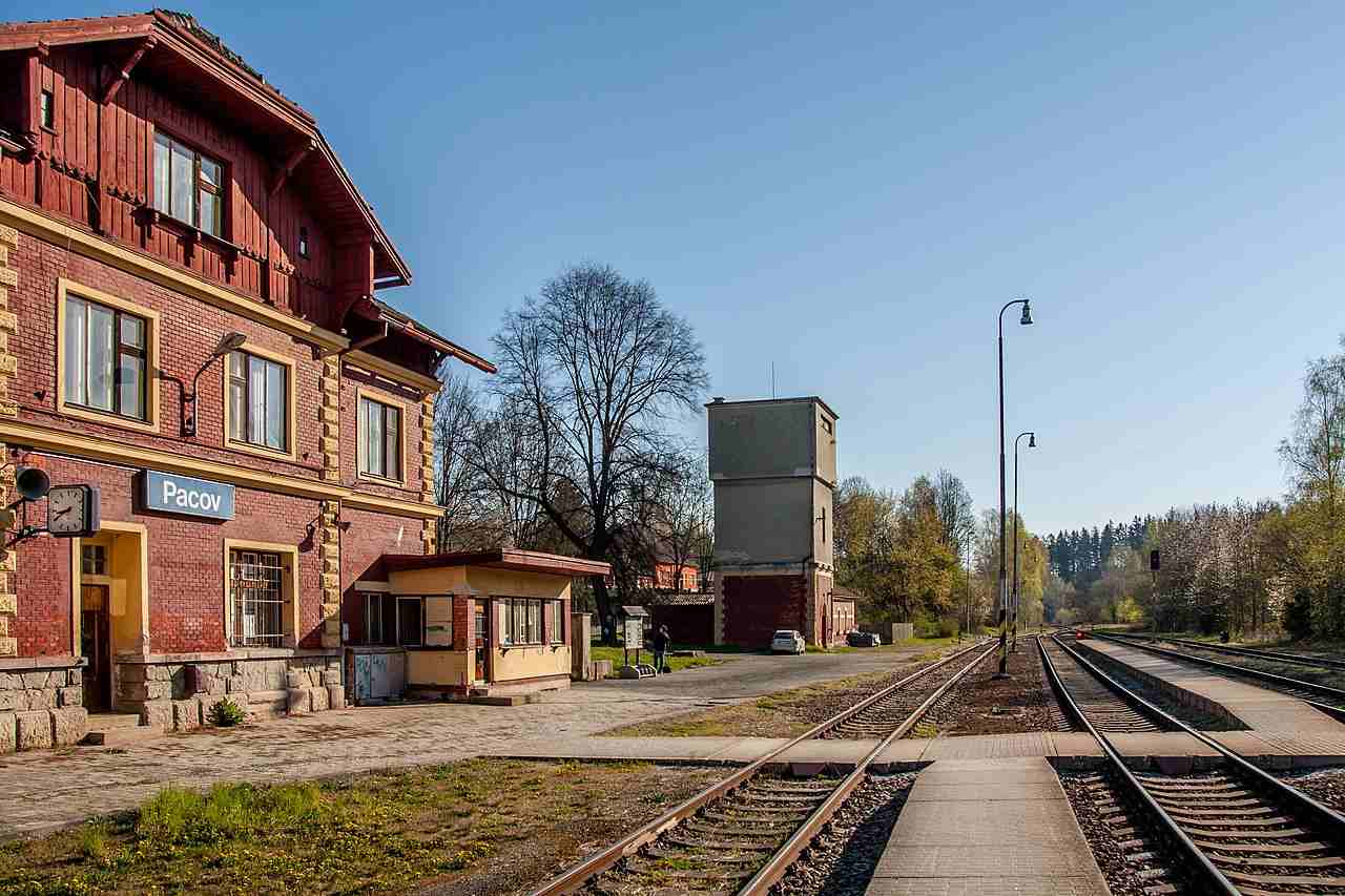 Nádraží Pacov na trati z Tábora do Horní Cerekve, na tzv. Hrbaté