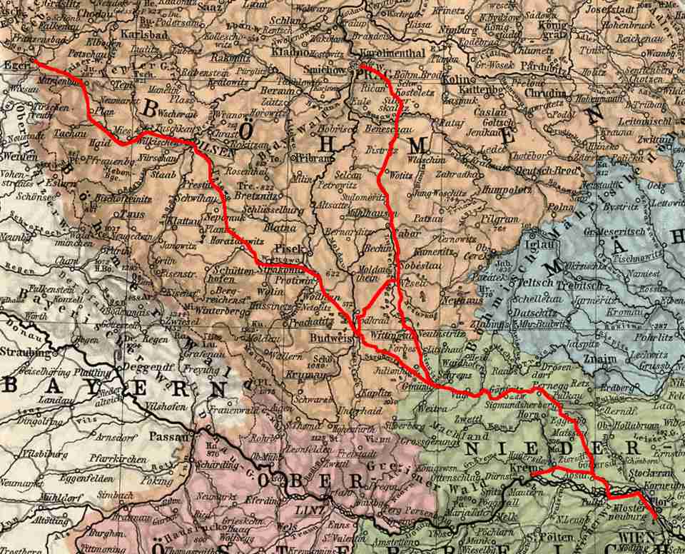 Dráha císaře Františka Josefa – tento název je sice zažitý především v Rakousku pro trať z Vídně do Českých Velenic, nicméně v roce 1866 byla založena společnost nesoucí tento název. Tato firma provozovala dopravu mezi Vídní a Prahou, mezi Českými Velenicemi a Chebem a mezi Českými Budějovicemi a Veselím nad Lužnicí. Lze tedy říct, že pokud cestujeme vlakem z Prahy do Veselí nad Lužnicí, jedeme po dráze císaře Františka Josefa. Dnes se tato trať nazývá také čtvrtý železniční koridor.