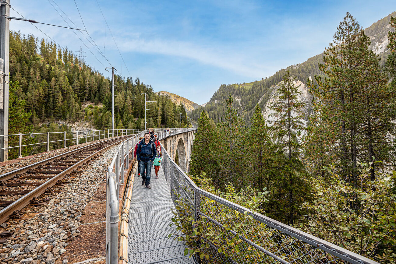 Působivý železniční most Rhétské dráhy a symbol regionu. 65 metrů vysoký a 136 metrů dlouhý most překonává soutěsku Landwasser šesti elegantními klenbami. Procházka z nedaleké stanice Filisur až pod tento most k odpočinkovému místu a zpět vám zabere přibližně hodinu a půl. Jen o trochu delší a náročnější je výlet až na vyhlídku Hennings.