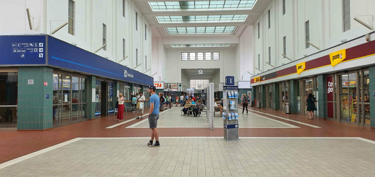 Hradec Králové hlavní nádraží bylo postaveno v letech 1929 až 1935 v tehdy moderním funkcionalistickém stylu. V roce 2019 probíhala rekonstrukce haly nádraží, přesto zejména nástupiště působí zanedbaným dojmem. Na nádraží jsou dva souběžné podchody. Z pohledu cestujícího, co stojí v hale, je vlevo Jižní podchod a vpravo Severní podchod. Tomu odpovídá označení nástupišť 1 až 3, která jsou „rozdělena“ na Jižní a Severní část. Protože na kolejích u nástupišť mohou stát i dva vlaky za sebou, věnujte pozornost odjezdovým tabulím ať nenastoupíte do špatného vlaku.