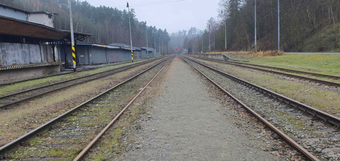 - Protože podél silnice nevede žádný chodník, využijte raději stezku podél trati. Tedy pokud není po dešti a není tam takové bláto jako dnes.