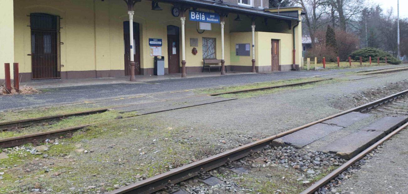 - Nádraží v Bělé pod Bezdězem je škaredé, oprýskané. Přestože u nádraží začíná modrá turistická značka, není podél silnice žádný chodník.
