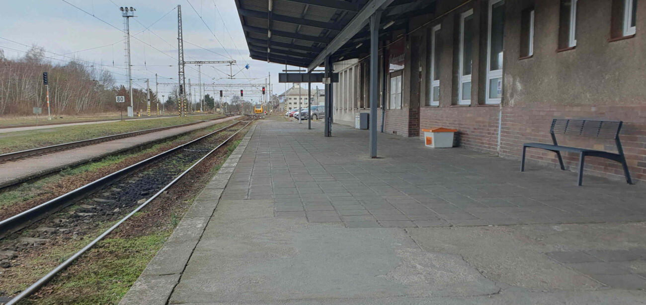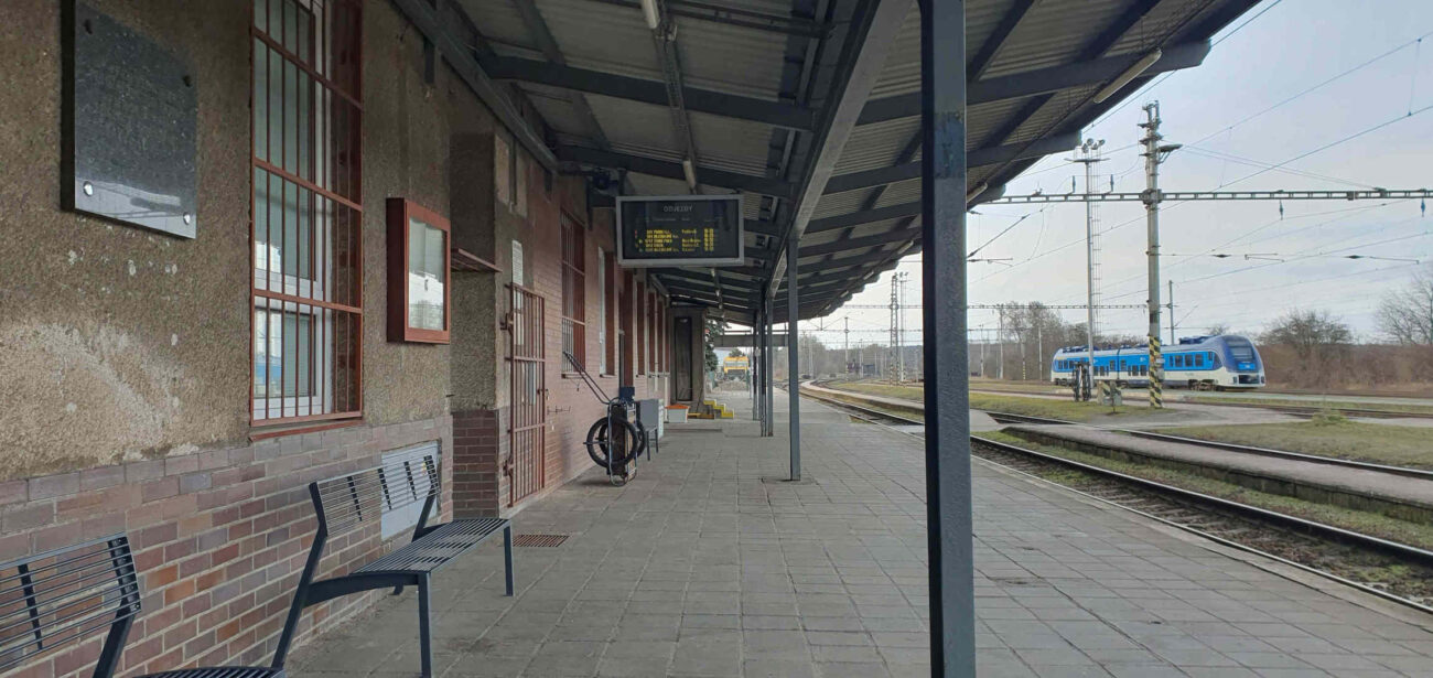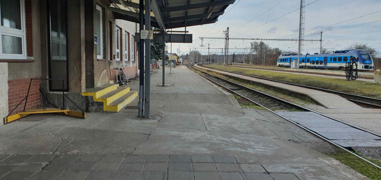 Bohužel ani jedno z nástupišť není vysoké, takže do vlaku musíte vždy nastupovat po schodech. Nástupiště nejsou ani označena.