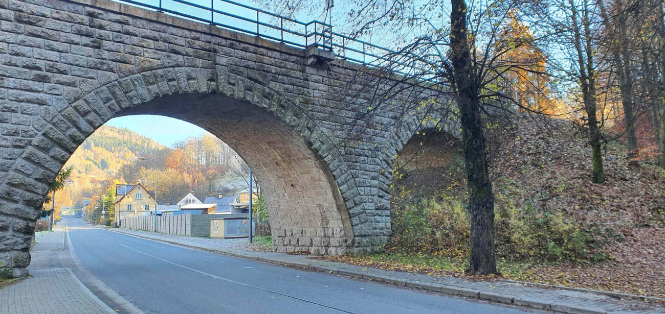 Železniční trať Tanvald–Harrachov, nazývaná též Jizerská dráha, překonává severně od centra obce Desná řeku Černou Desnou a souběžnou silnici pomocí kamenného železničního viaduktu. Impozantní stavbu postavili italští mostaři z jizerské žuly. Sloužit začal v roce 1894 a tvoří jej devět oblouků, které celkem měří 123,5 metru.