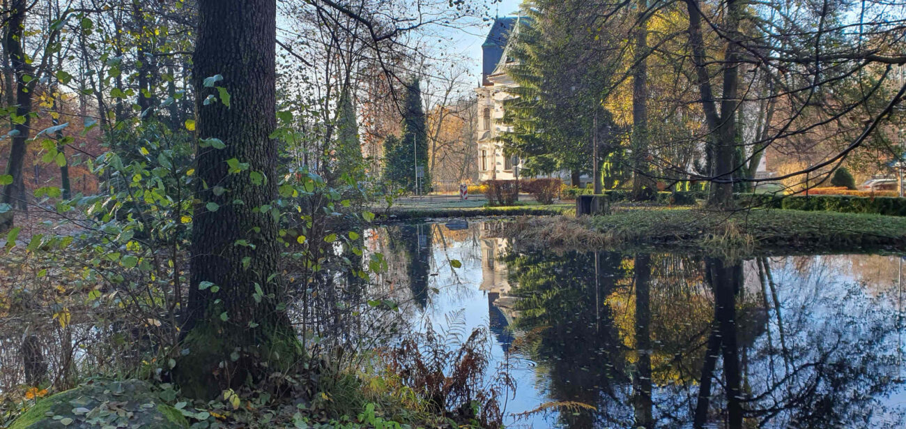 Tři minuty chůze z parku do kopce je vlaková zastávka Desná-Riedlova vila.