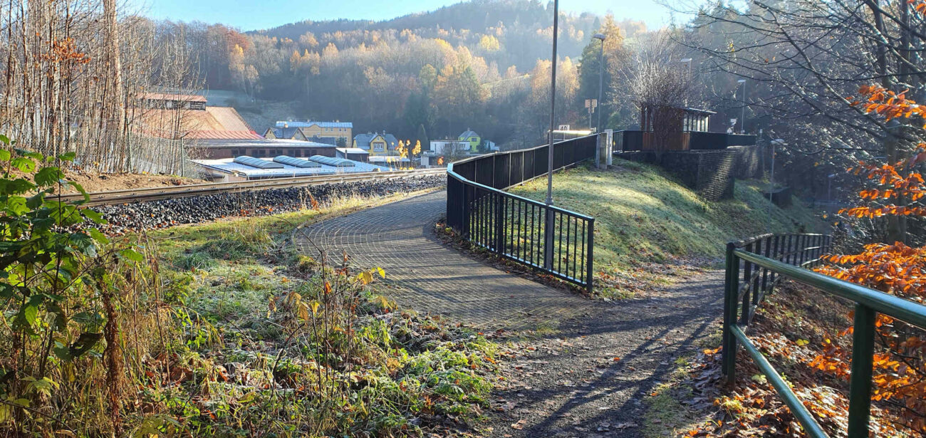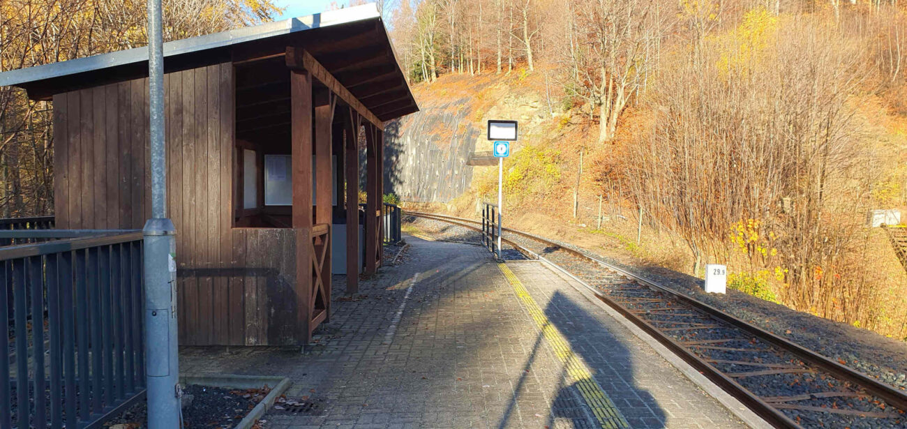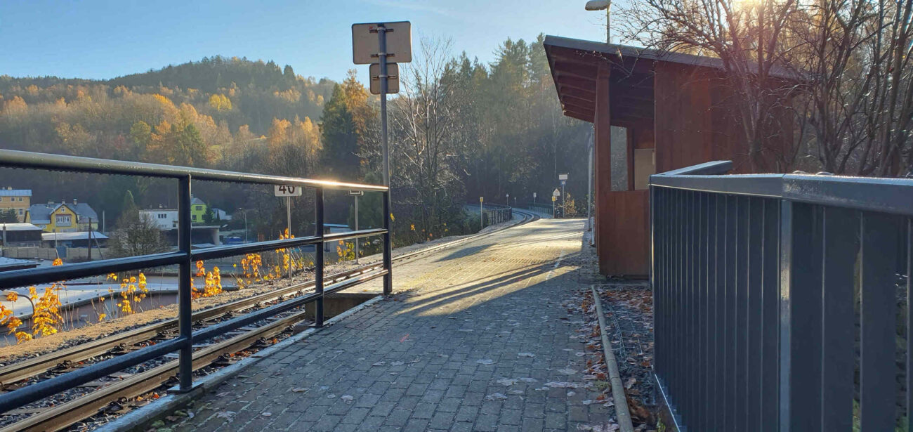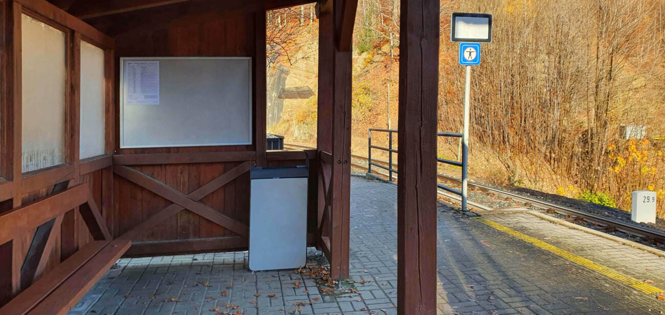 Škoda, že dole u cesty k zastávce není nějaká směrovka. Druhá moje připomínka se týká krátkého nástupiště, kvůli kterému lze u delších vlaků v této zastávce vystupovat pouze z prvního vozu. Bohužel hlášení o tom, že se otevřou dveře jen v prvním voze, zaznívá až těsně před zastávkou, což může být pro některé cestující pozdě.