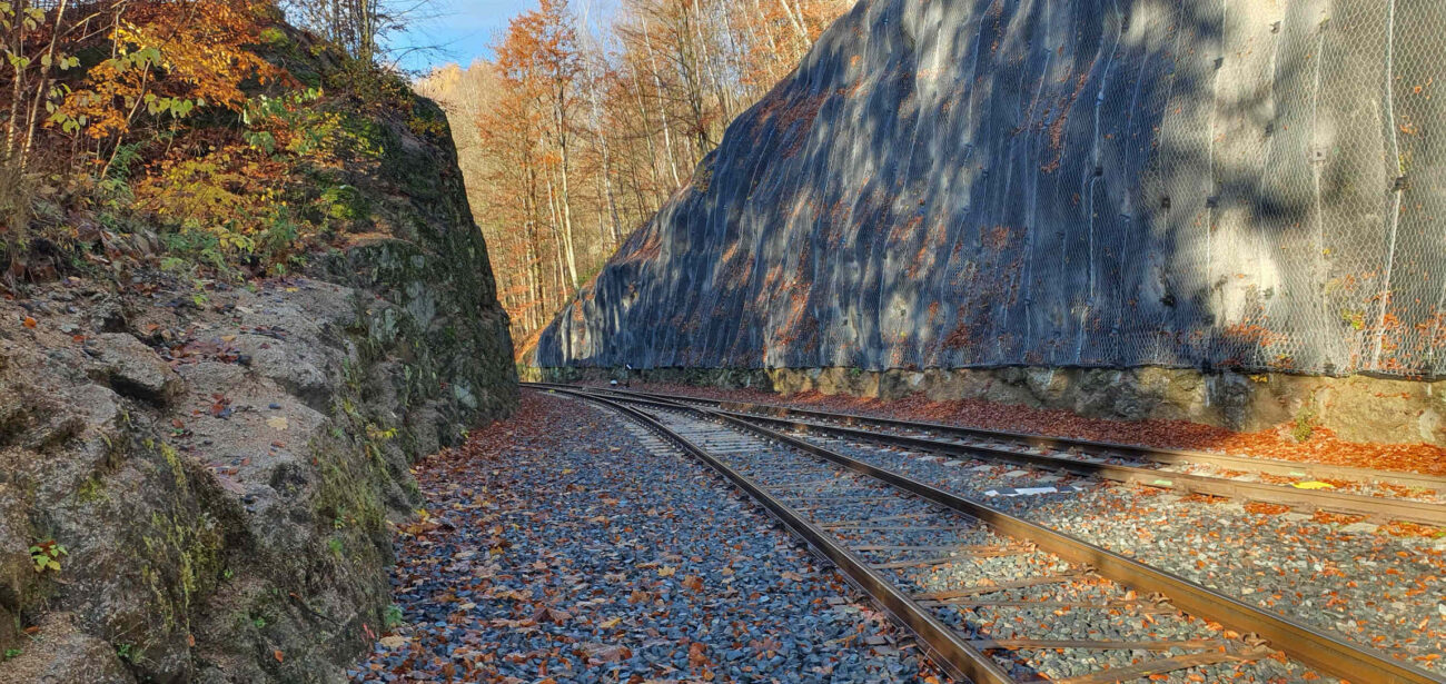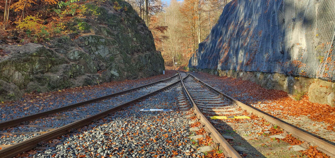 Železniční trať z Tanvaldu do Kořenova je jednokolejná dráha, která je součástí tzv. Jizerskohorské železnice. Trať pokračuje přes výhybnu Harrachov až do polské Szklarské Poręby. V úseku Tanvald–Kořenov má trať natolik prudké stoupání, že musela být doplněna o ozubnicovou kolej. Jedná se o jednu z posledních normálně rozchodných ozubnicových železnic v Evropě a zároveň o nejstrmější železnici v Čechách. Za touto technickou památkou do Kořenova jezdí mnoho turistů.