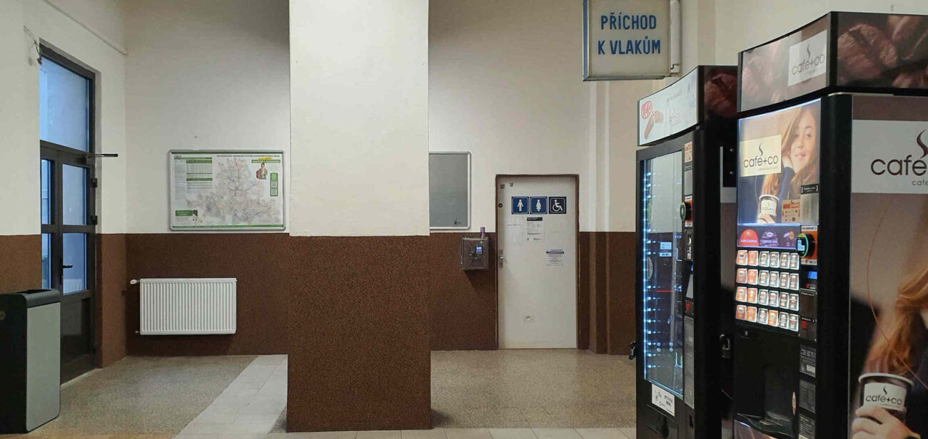 - Hlášení / odjezdové informační tabule: jen staniční rozhlas