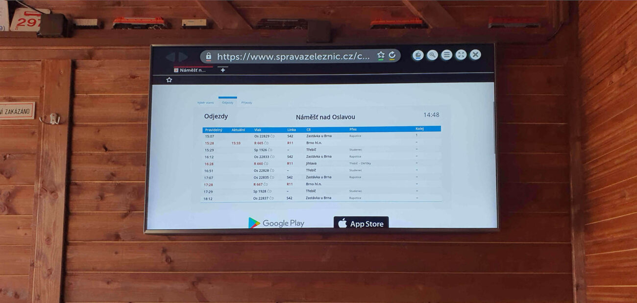 - Odjezdy vlaků ze stanice v Náměšti. Dobrý pomocník, pokud se obraz a čas nezastaví.