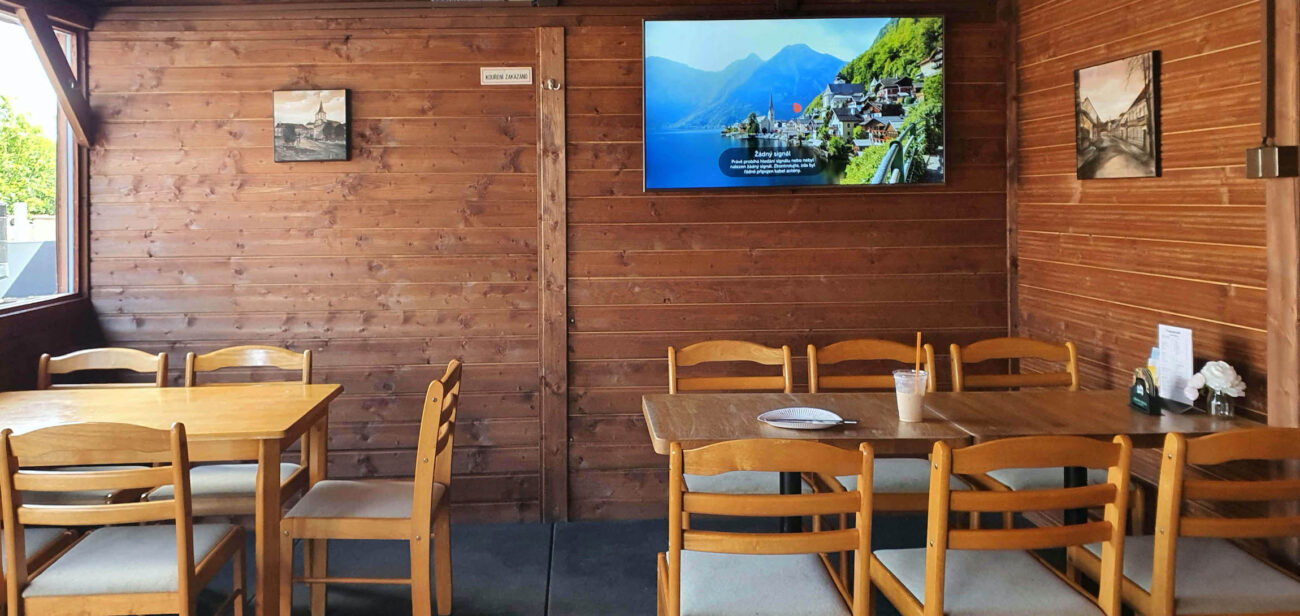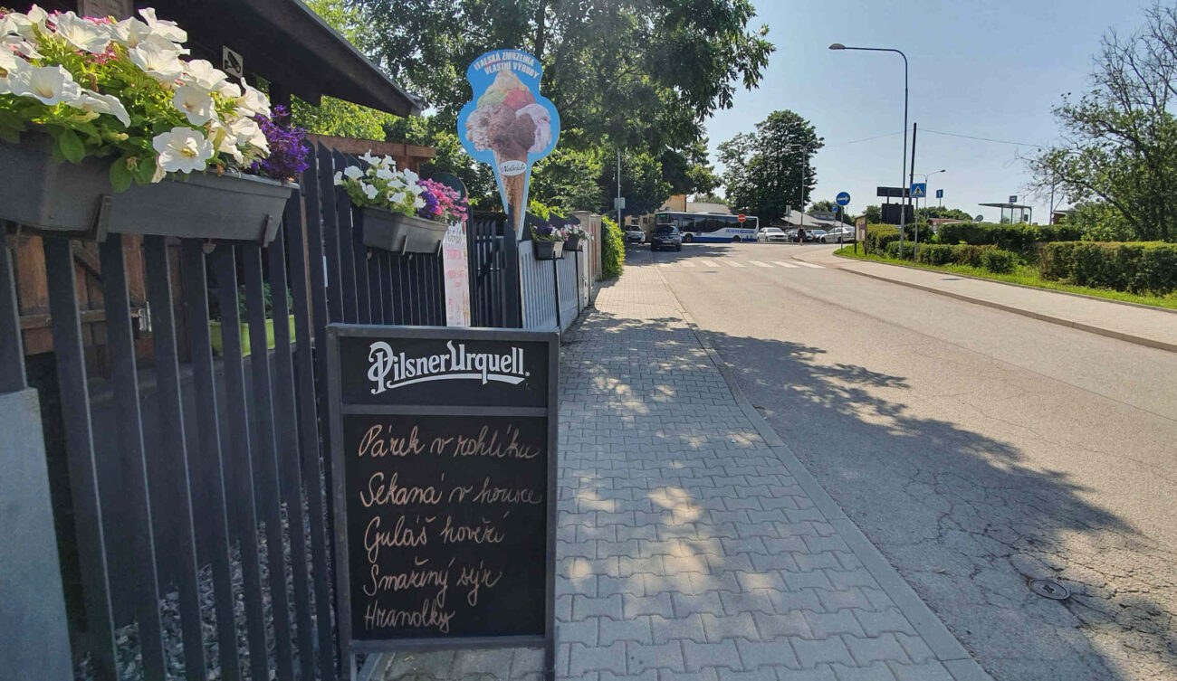 - U vchodu vás vítá tabule s dnešní nabídkou a v létě symbol zmrzliny.