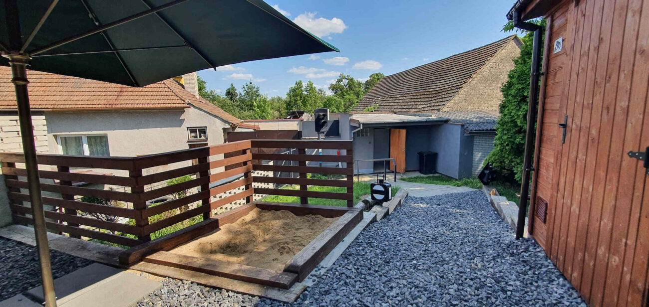 - Pro děti tu mají i pískoviště. A kolem jsou další předměty se železniční tématikou.