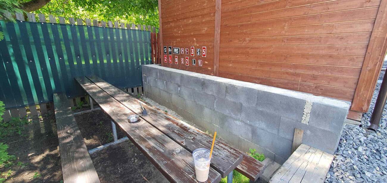 - Posezení v Občerstvení u nádraží je možné na zahradě na několika lavicích. Vzadu jsou i záchody.